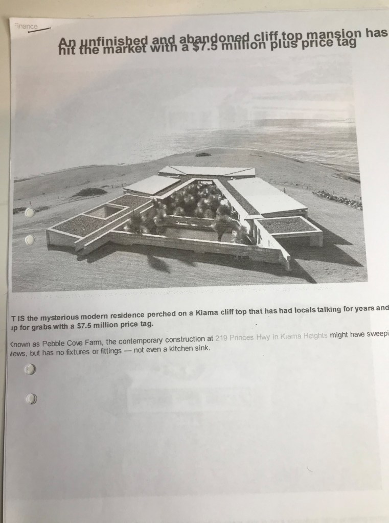 ‘It’s unbelievable, but since our conversation last night a property has come onto the market, two hours south of Sydney in Australia. Our security people love it, as it will be very simple to fortify. It has panoramic clifftop ocean and countryside views of 360 degrees.