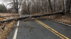 A tree across the road signalled the first warning that they were in trouble.