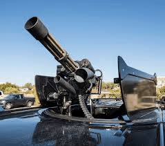 The last SUV’s roof slid back and a rocket launcher popped out of the opening, first clearing a way through the felled tree in front,