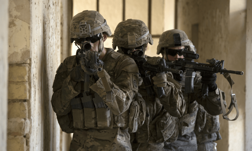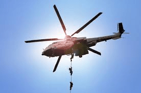 The helicopter disappeared around the buildings and was out of sight in seconds. Men were dangling from the trailing ropes.
