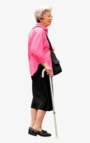 80 year old woman with a walking stick.